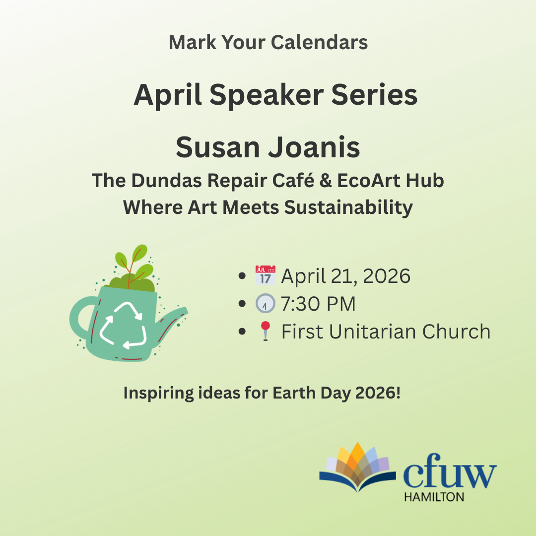 🌱 Mark your calendars! Our April Speaker Series Features – Susan Joanis Posted byInfoMarch 24, 2026March 21, 2026Posted inUncategorized 🌱 Mark your calendars! Our April Speaker Series features Susan Joanis sharing the story behind the Dundas Repair Café & EcoArt Hub—where creativity and sustainability come together. Inspiring ideas just in time for Earth Day 💚 Share this: Share on Facebook (Opens in new window) Facebook Share on X (Opens in new window) X Share on Pinterest (Opens in new window) Pinterest Email a link to a friend (Opens in new window) Email Share on LinkedIn (Opens in new window) LinkedIn Print (Opens in new window) Print Like Loading... Related