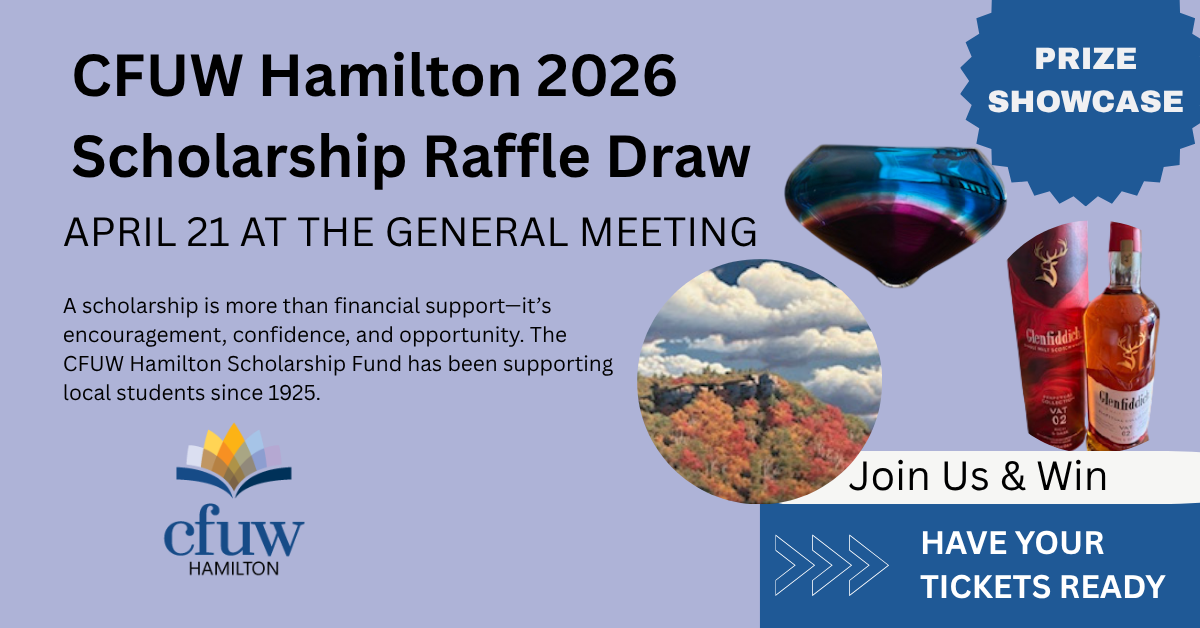 Every dollar raised through our Fundraising Project goes directly to the CFUW Hamilton Scholarship Fund, helping local students pursue their dreams of higher education. Together, we can continue our 100-year legacy of supporting learning and opportunity in the Hamilton community.