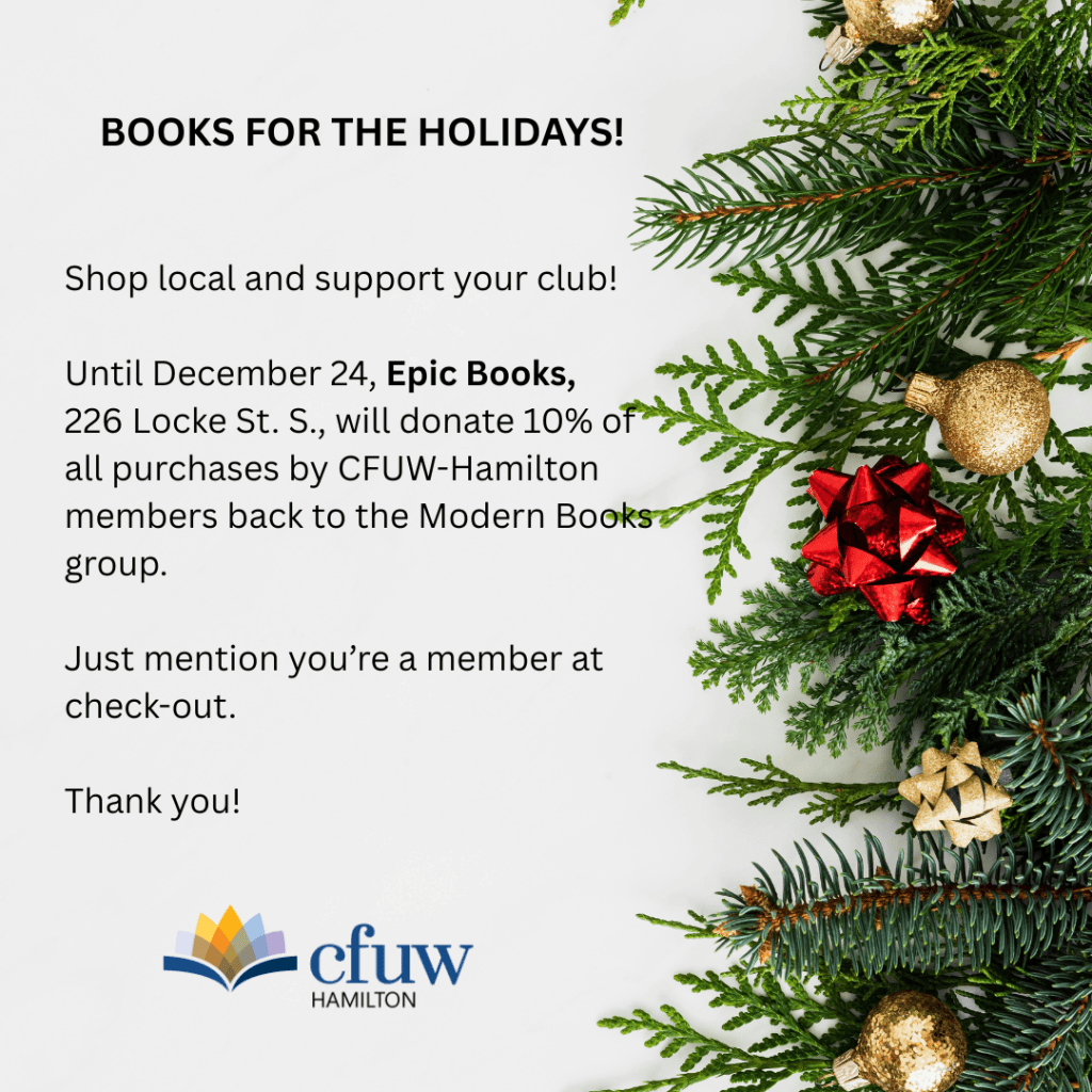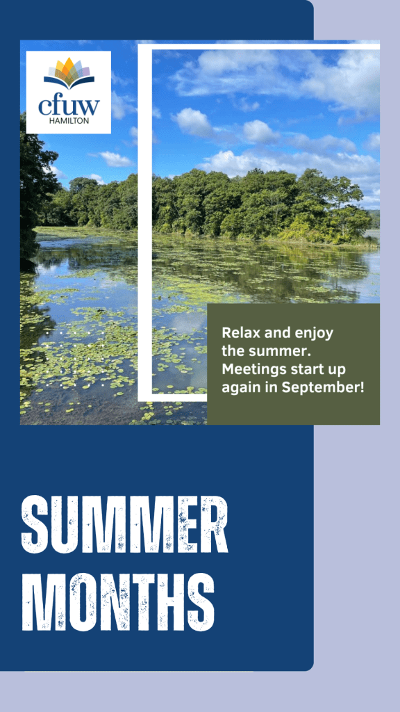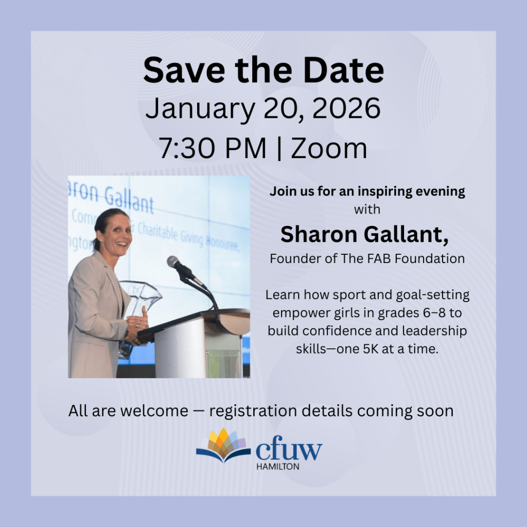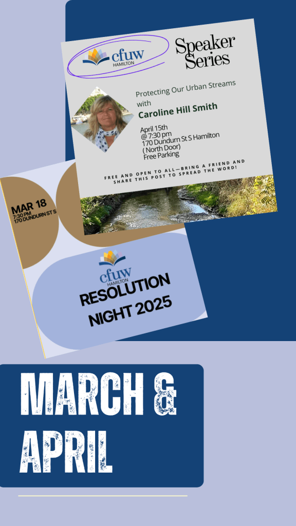 CFUW Hamilton members will receive the link by email. Others can request it via our website.
