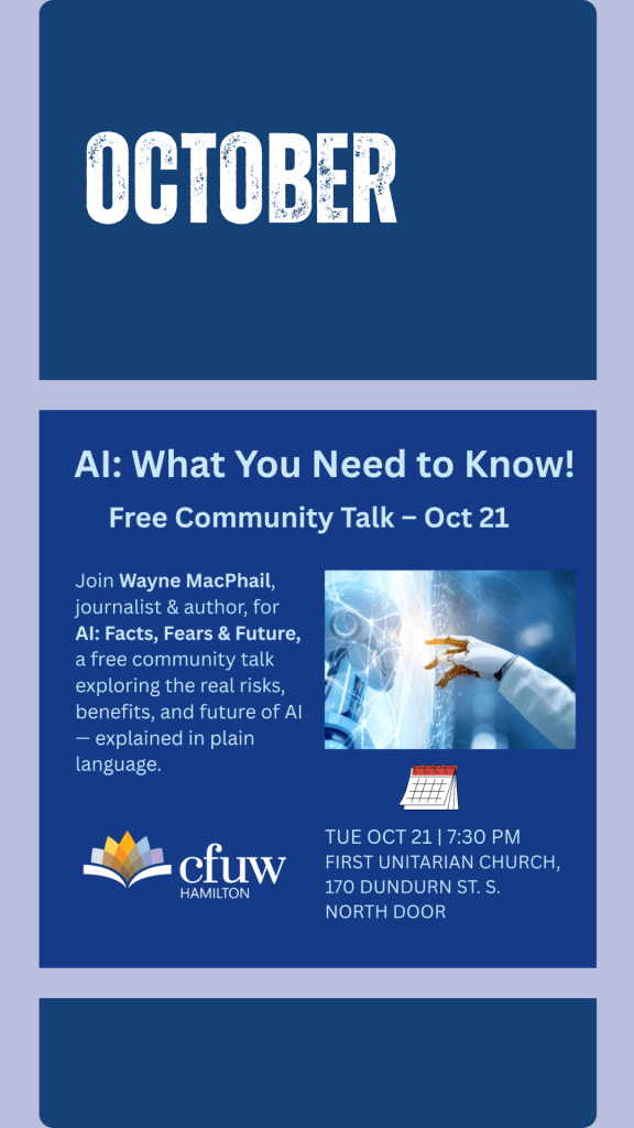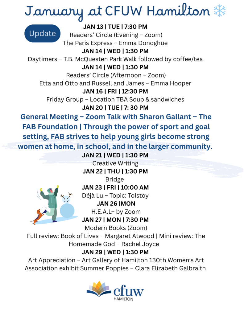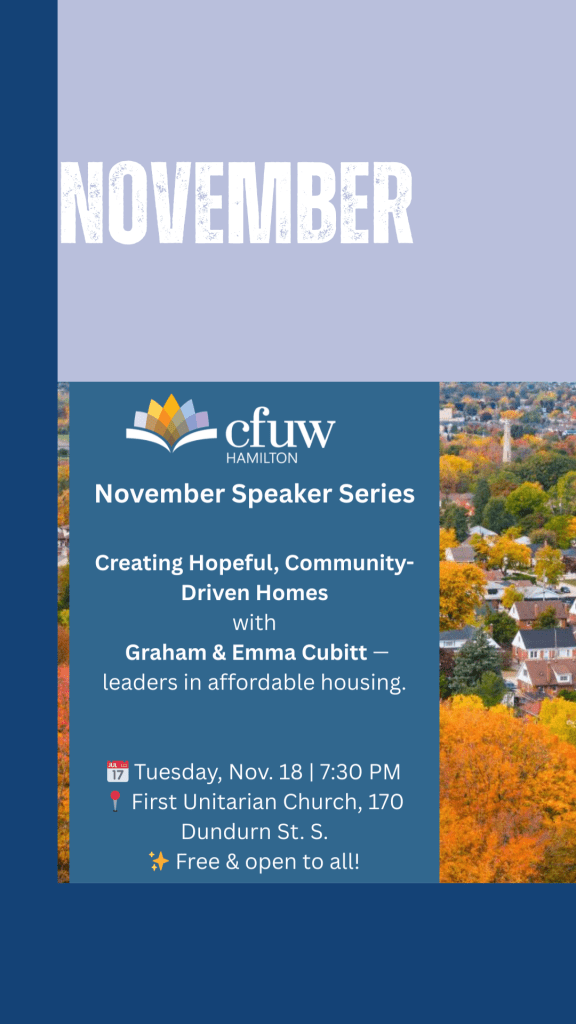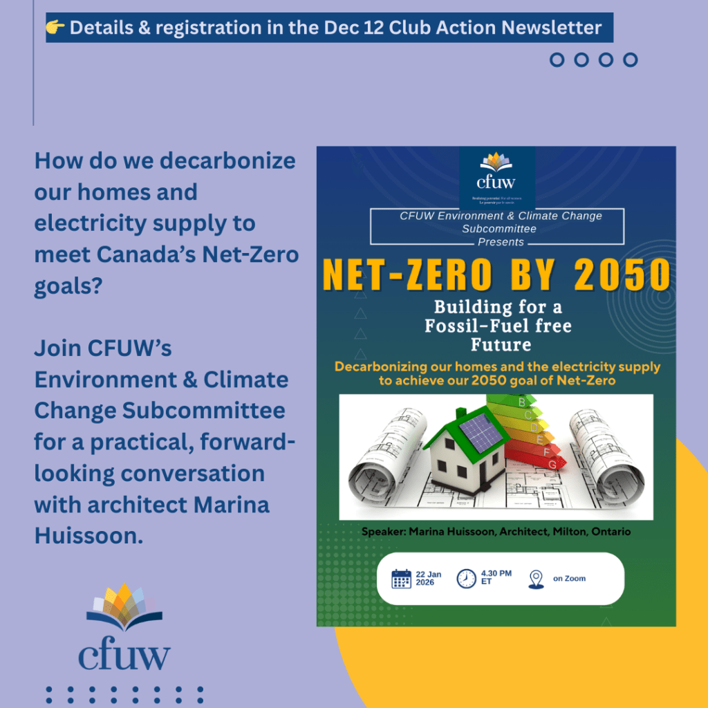 CFUW Hamilton members will receive the link by email. Others can request it via our website.