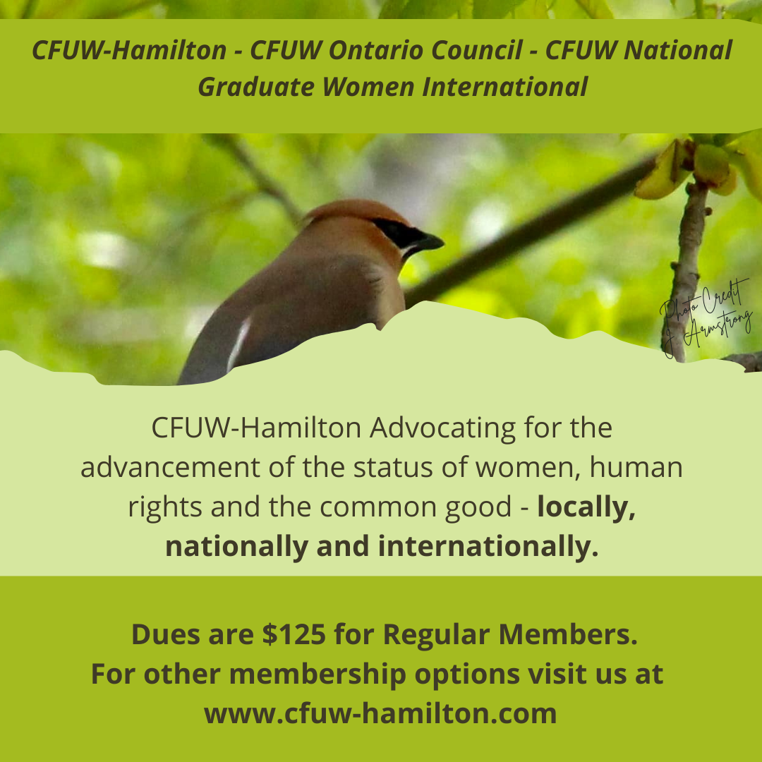 For details and registration information see the CFUW Club Action Newsletter Special Edition June 8, 2022 .