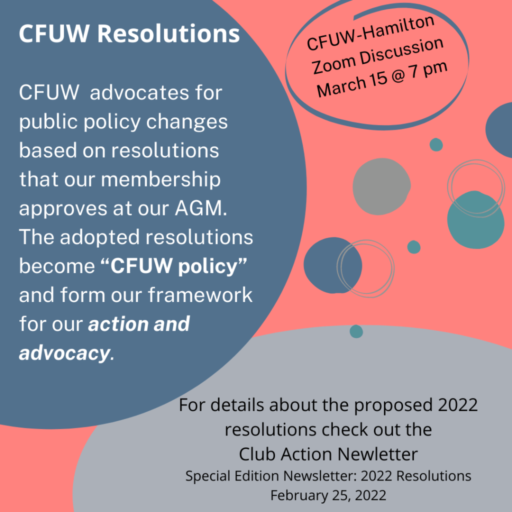 CFUW 2022 Resolutions – Zoom Discussion March 15 @ 7 pm